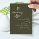 Announce and share your happily ever after in style with our modern olive green theme design (The Morning After) wedding elopement celebration invitation card. It is ideal for couples who have decided to celebrate their best day. With its sophisticated yet playful design, this invitation is sure to set the tone for an unforgettable event. The invitation card features a modern and minimalist script design theme, adding a touch of timeless elegance to your celebration. Designed by TeeshaDerrick