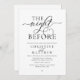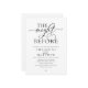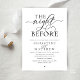 "The Night Before". Modern romantic minimalist Classy design themed, wedding rehearsal dinner invitation card in black and white theme. Planning a wedding Rehearsal Dinner celebration with the to-be Bride and to-be Groom, before their BIG day? Invite the guests with this perfect Wedding Rehearsal Dinner Invitation Card. Easily edit it with your rehearsal dinner invitation details.