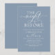 "The Night Before". Modern romantic minimalist Classy design themed, wedding rehearsal dinner invitation card in dusty blue theme. Planning a wedding Rehearsal Dinner celebration with the to-be Bride and to-be Groom, before their BIG day? Invite the guests with this perfect Wedding Rehearsal Dinner Invitation Card. Easily edit it with your rehearsal dinner invitation details.