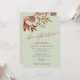Modern bohemian botanical watercolor boho autumn fall flowers and foliage with dried leaves making a chic autumn wedding rehearsal dinner invitation with a trendy handwriting calligraphy script and earthy terracotta beige color palette on a light sage green background.