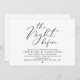Announce your happily ever after in modern romantic style with our black and white theme design (The Night Before) wedding rehearsal celebration invitation card. It is ideal for couples who have decided to celebrate the night before their big day. With its sophisticated yet playful design, this invitation is sure to set the tone for an unforgettable event. The invitation card features modern romantic script design, adding a touch of timeless elegance to your celebration. Designed by TeeshaDerrick