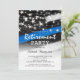 Convite de festa de aposentadoria da polícia para celebrar a aposentadoria de um oficial do serviço. Com uma bandeira dos EUA com a thin blue line, luzes de corda e um modelo de festa moderno.