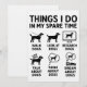 Funny dog lover quote with playful icons about walking dogs, looking at dogs, researching dogs, talking about dogs, thinking about dogs and dreaming about dogs. Ideal for dog fans who enjoy humor.