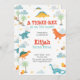 Third birthday party invitation featuring cute dinosaurs and a THREE-REX.