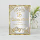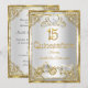 Convite para festa de 15 anos Quinceanera com tiara de carruagem de cavalos. Moldura de damasco de pérolas elegante e dourada. Personalize com seus próprios detalhes. Por favor, note que todas as imagens são planas! elas não têm joias reais!