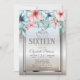 Tíara de prata, flores em glitter prateado bokeh ombre Doce 16 convite de aniversário.