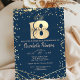 Dourada tiara e diamantes de ouro em um marinho azul 18º convite de aniversário.
