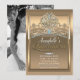 Convites Tiarra de Coração de Princesa Dourada Glam Quincea