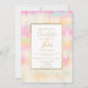 Tie dye pastel watercolor rosa, amarelo arco-íris hippie chic gold script casamento e um chic luxurioso gold frame border com um moderno e elegante roteiro de caligrafia. Perfeito para temas de casamentos de destino e praia.