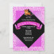Um filhote de tigre bonito do bebê está saltando através de uma aro cor-de-rosa e branca cercada pelas estrelas sparkling ajustadas contra um fundo cor-de-rosa brilhante afiado com um teste padrão do impressão da pele animal. Uma bandeira cor-de-rosa tem os modelos brancos para seu fraseio personalizado. Este design adorável é perfeito para partidos do tema do safari e do circo de selva para crianças.