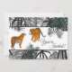 Este convite para o casamento contém dois tigres Bengle laranja e preto, apaixonados. Eles são colocados contra um fundo de palma, fundo da selva tropical.