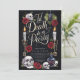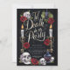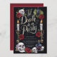 Celebre a noiva a ser com este chá de panela escuro e elegante do "Partido da Morte de Til". Apresentando elementos góticos como crânios, velas e rosas vermelhas ricas sobre um fundo preto, este design capta perfeitamente uma vibração assustadora mas sofisticada. Ideal para chás de panela temáticos do Dia das Bruxas, este convite dá o tom para uma noite de diversão e celebração. Personalize o texto para torná-lo seu e impressione seus convidados com um convite exclusivo e memorável.