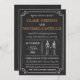 Este convite para o casamento com um fundo preto de quadro negro, esqueletos, e texto branco e laranja é perfeito para um casamento de Halloween ou outubro! Contacte-me se pretender obter ajuda para formatar as suas informações de texto neste convite.