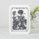 Este convite de casamento simulado apresenta uma ilustração antiga da morte esquelética, todos enfeitiçados em rosas. Perfeito para casamentos de Halloween ou Dia de los Muertos, ou para quem sabe que a morte está presente mesmo no meio da vida. Design vertical preto e branco.