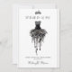 Coroa escura e vestido com gotas pretas fará seu chá de panela se destacar. A tipografia da caligrafia escrita à mão acrescenta ao olhar elegante. O preto e branco simples é impressionante e perfeito para um chá de panela gótico ou chá de Halloween. Veja a coordenação de itens no nosso compro, Encantado Finch.
