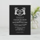 Elegante e gótico "até a morte nos separarmos" O convite para o casamento de Halloween em preto e branco, com uma mão esquelética formando um coração, e um fundo preto escovado. Para combinar suprimentos assustadores, visite nossa coleção para encontrar mais itens coordenadores que correspondam a esse design.