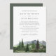 Set the tone for your elegant outdoor wedding with this double-sided invitation from the Timberline collection by Redwood & Vine Design Co. The front features watercolor trees and mountains in muted green tones—perfect for a forest wedding or winter celebration. The back offers a clean, rustic minimalist layout for additional event details and a scannable QR code.