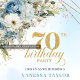 Celebrate a milestone in style with this elegant 70th birthday invitation featuring watercolor dusty blue and white flowers, soft eucalyptus greenery, and a shimmering gold frame. Designed in chic boho style with refined script lettering, this floral invitation is perfect for a classy 70th birthday party. Ideal for formal, garden, or luxury celebrations with a timeless, sophisticated touch.