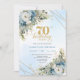 Convites Timeless bohemian blue florals gold 70th birthday