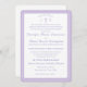 Available in a variety of colors, this design features the traditional format for a Catholic wedding invitation displayed in a lovely purple font against a white background. Top displays the monogram of bride and groom on either side of a cross. A small heading is featured above as an arch. Design is framed by an elegant purple and white border.