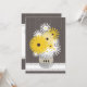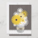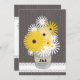 Um convite de casamento com uma ilustração de uma lata pode ser preenchido com margaridas e suspiros de olhos pretos com fundo de madeira de barro. Personalize com suas iniciais em lata. Procure itens correspondentes na Paperie da Jill. A redação é dos pais da noiva.