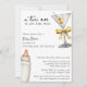 Um Tini Está A Caminho Do Convite Para Chá de fraldas Amarelo Martini - Um simples convite para chás de fraldas de aquarela para um chá de fraldas neutro em termos de gênero. Apresentando caligrafia de script e fonte de bloco elegante. Uma ilustração aquosa de um martini sujo com duas azeitonas e um arco amarelo ouro coquetel enfeita o canto superior direito enquanto uma ilustração aquosa de uma garrafa de bebê enfeite o canto inferior direito. Edite este modelo de convite de chá de fraldas com seus próprios detalhes de evento. Todo texto é editável. Também disponível como um download digital instantâneo, uma forma ecologicamente correta de enviar convites via texto, email ou mídia social.
