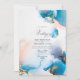 Este belo convite para o casamento apresenta um fluxo gracioso de tinta alcoólica em tonalidades de azul e ouro, com uma delicada pincelada de calor e romance. A elegante paleta colorida e design artística a tornam uma escolha ideal para casamentos modernos com um toque de sofisticação. Perfeito para casais que apreciam arte e na moda, detalhes contemporâneos.