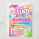Tinta de vamos e comemore! Personalize seus próprios convites de aniversário de festas de arte com cores divertidas do arco-íris.