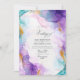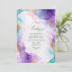 Este maravilhoso convite de casamento apresenta uma design de tinta a álcool em tons opulentes de roxo e azul, destacada com sotaques de ouro elegantes. A rica mistura de cores e texturas cria uma sensação sofisticada e artística perfeita para um casamento moderno e na moda. Ideal para casais que procuram fazer uma declaração ousada, este convite oferece uma fusão única de elegância e tendências.