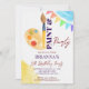 Convite de festas digital instantâneo de pintura e arte partidária editável com temas modelo, pincel colorido e paleta de tinta aquosa convite para o partido de pintura artística