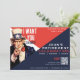 Convite de festa de aposentadoria Tio Sam vermelho, branco e azul. Personalize com os detalhes do seu evento e código qr.