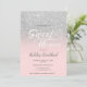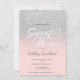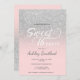 Um moderno, bonito e falho chá brilhante prateado com bloco cor-de-rosa, convite de aniversário Sweet 16 com tipografia elegante, com padrão verde-prateado desaparecendo sobre um fundo personalizável. Perfeito para uma princesa Doce 16.