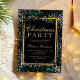 Uma tipografia de ouro moderna, chica e elegante convite de festas de Natal verde-aquarela floral com folhagem de folha de cor aquosa pintada à mão sobre fundo preto com neve branca e flocos de neve.