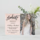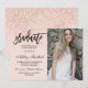 Um brilho rosa de ouro moderno e original brilha cor-de-rosa com formando de tipografia. Adicione sua foto. Convite à festa de formatura legal e moderno.