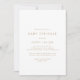 Este convite para o bebê da tipografia do ouro-chic é perfeito para um chá de fraldas moderno. O simples design apresenta ouro minimalista clássico e tipografia branca com um toque rústico. Personalizável em qualquer cor. Mantenha o design mínimo e elegante, como está, ou personalize-o adicionando seus próprios gráficos e trabalhos de arte.