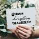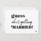 Simples preto e branco trendy ousado convite de casamento para a tipografia com um divertido roteiro de citação moderna de "adivinhar quem vai se casar".