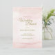 Este convite Dourado de casamento do Tipo Água Rosa apresenta um design elegante, mas minimalista e versátil. Os tons de coral, pêssego, pincel, mauve e rosa empoeirado dentro da cor-de-água rosa pintada aludem a um nascer do sol ou pôr do sol, embelezados com mínima brilho dourado junto com o tipo de caligrafia dourada, criando um design delicado e elegante, porém único e simples.