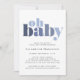 Quando amigos e familiares não podem ficar juntos, celebre a futura mãe com um chá de fraldas virtual online. Este convite para o chá do bebê legal apresenta "oh baby" em ousada tipografia moderna em tons de azul. Personalize facilmente os detalhes do chá virtual, incluindo um link de acesso on-line, informações do registro, onde enviar cartões e presentes e um contato para obter mais informações.