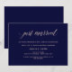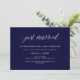 Esses convites elegantes para festas após o casamento apresentam um fundo azul marinho e caligrafia rosa beije elegante para um visual moderno minimalista.