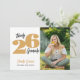 Este convite de festa de formatura apresenta o ano de graduação em grandes números de ouro em negrito e é emparelhado com um texto de estilo de escrita manual. O design oferece uma foto vertical na frente e uma horizontal na parte traseira. O texto personalizado, no verso, permite que você adicione os detalhes do convite da sua parte.