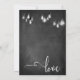 Este cartão de recepção de casamento elegante, mas rústico, apresenta um gráfico de fundo de quadro-negro texturizado sobreposto por pingente pendente em escala de cinza e luzes Edison vintage. Usei uma fonte de roteiro moderna e elaborada para renderizar gráficos que retratam as palavras "Nos Fomos Casar em Elopement!" na frente e "amor" no verso. Seu próprio texto é facilmente adicionado para personalizar este modelo, tanto pouco ou muito quanto desejar. Use os campos do modelo para simplesmente inserir seus detalhes pessoais e clique para personalizar ainda mais, se desejar reposicionar qualquer uma das camadas desbloqueadas ou modificar ainda mais o design de acordo com suas preferências pessoais. Por favor, não hesite em entrar em contato comigo para solicitações especiais ou para obter assistência com a personalização.