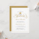 design de tipografia elegante de script do Formando Dourado com texto personalizável em cinza e ouro em fundo branco. Simples convite para comemoração da tipografia.
