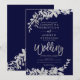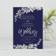 Casamento chic floral marinho azul de folha prateada com folhagem de folha de prata pintada manualmente. O fundo azul do marinho é totalmente personalizável