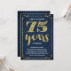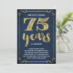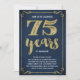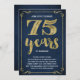 Este convite de aniversário de casamento de 75 anos, sofisticado e elegante, apresenta tipografia vintage, floreios elegantes, caligrafia de pincel, folha dourada falsa e um fundo azul-marinho chic.
