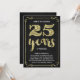Este convite de festa de aniversário de casamento de 25 anos, sofisticado e elegante, apresenta tipografia vintage, floreios elegantes, caligrafia de pincel, folha dourada falsa e um fundo preto chic.