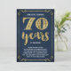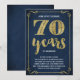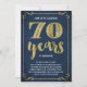 Este convite de festa de aniversário de casamento de 70 anos, sofisticado e elegante, apresenta tipografia vintage, floreios elegantes, caligrafia de pincel, folha de ouro falsa e um fundo azul-marinho chic.