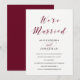 Este convite de festa após o casamento apresenta caligrafia em marsala / borgonha juntamente com texto preto moderno, em um elegante fundo branco.