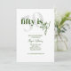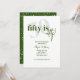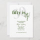 Tipografia em negrito com caligrafia 50 é um convite de aniversário festivo em verde e branco. O verso apresenta um fundo totalmente verde com manchas/brilhos brancos para imitar as bolhas no vinho e champanhe para celebrar como envelhecemos como um vinho fino. Todo o texto é completamente personalizável.