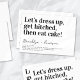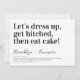 Convide amigos e família para se juntarem a vocês para suas celebrações de casamento com este divertido convite para o casamento. O texto diz: "Vestir-se, ficar preso, depois comer bolo!"