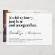 Convide amigos e família para se juntarem a vocês para suas celebrações de casamento com este divertido convite para o casamento. No texto lê-se "Nada de rico apenas de amor e de bar aberto"